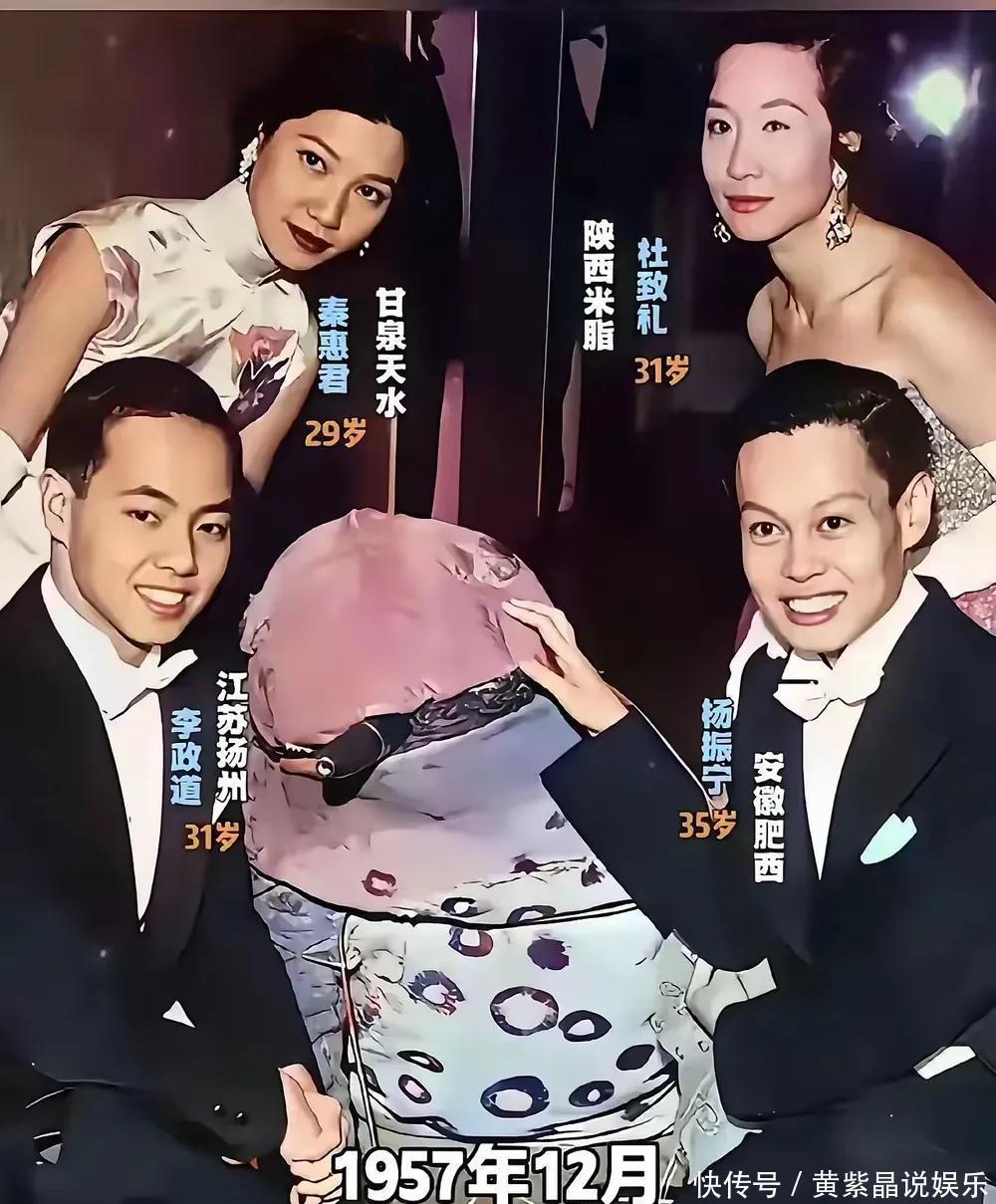 杨振宁与李政道的夫人,来自大西北,美貌出众,诺贝尔奖上好惊艳 胡适、吴建雄、李政道的合影里,中间穿短袖旗袍的就是物理学家吴建雄,她可是杨振宁和李政道都特别敬重的前辈,说是恩人都不为过呢。 1957 年那回可太风光了!35 岁的杨振宁和 31 岁的李政道登上诺贝尔领奖台,这可是华人头一回拿这个奖,真是长脸啊!两人穿着燕尾服走上去,又绅士又儒雅,颜值丝毫不输现在的男明星,那场面太让人难忘了。